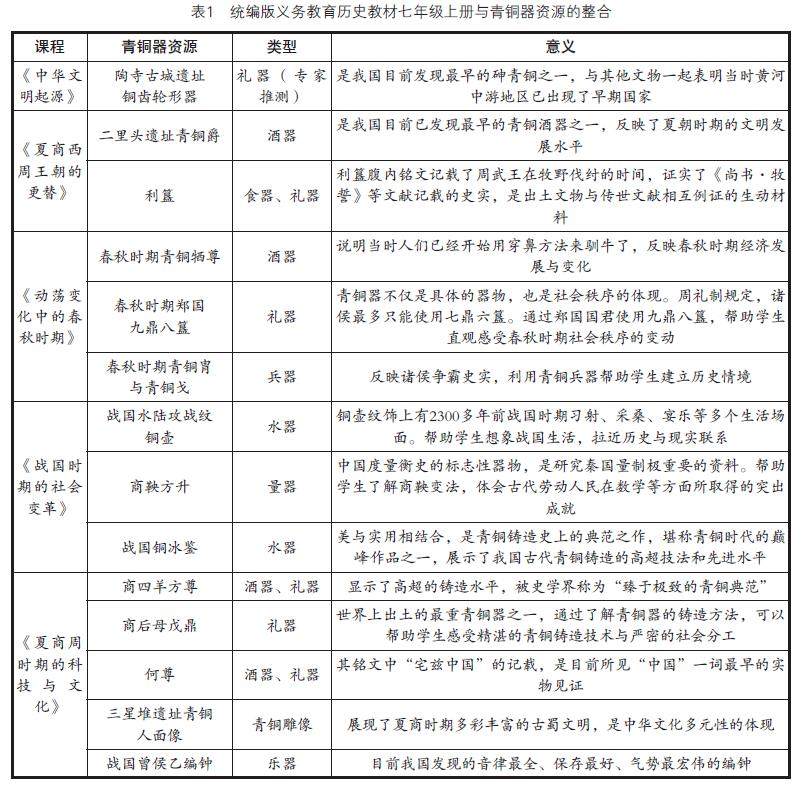 关键词:文物资源;青铜器;初中历史教学;核心素养