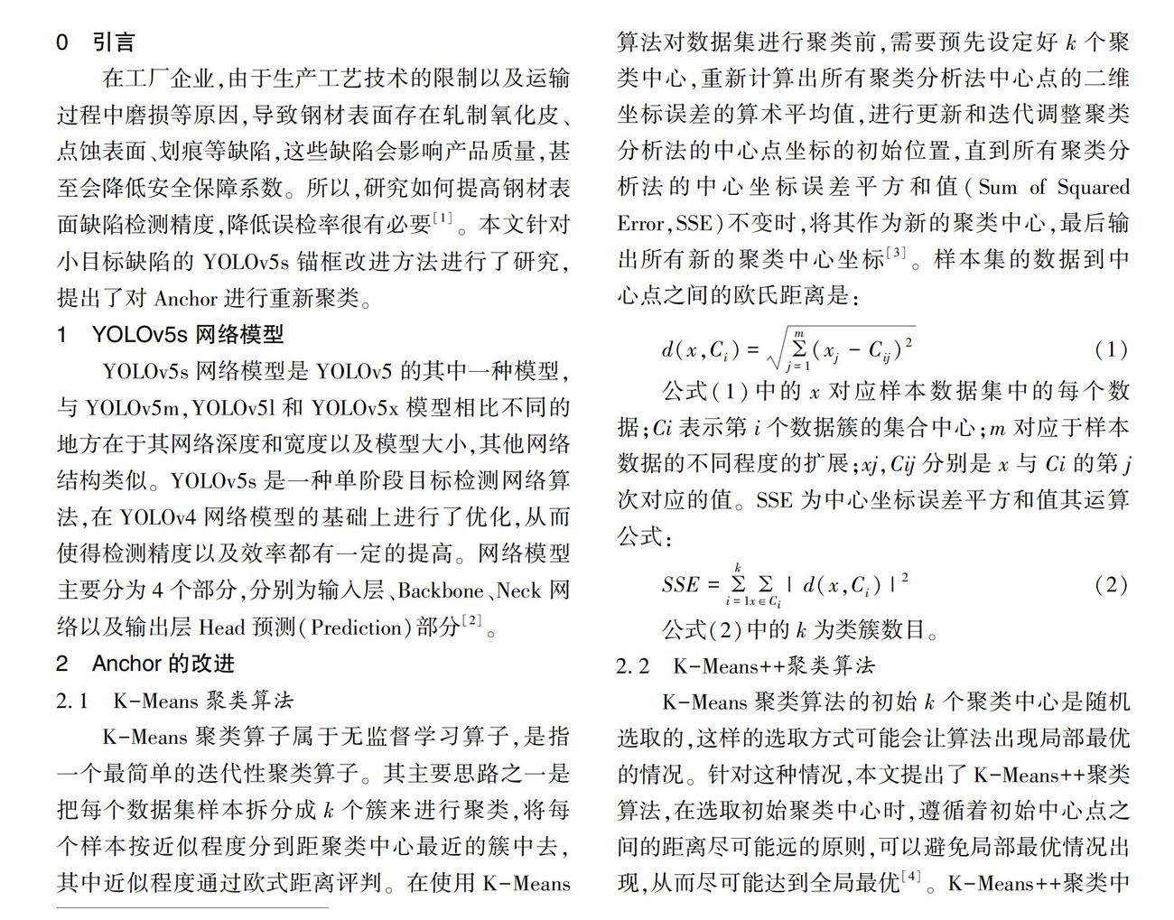 针对小目标缺陷的YOLOv5s锚框改进方法研究