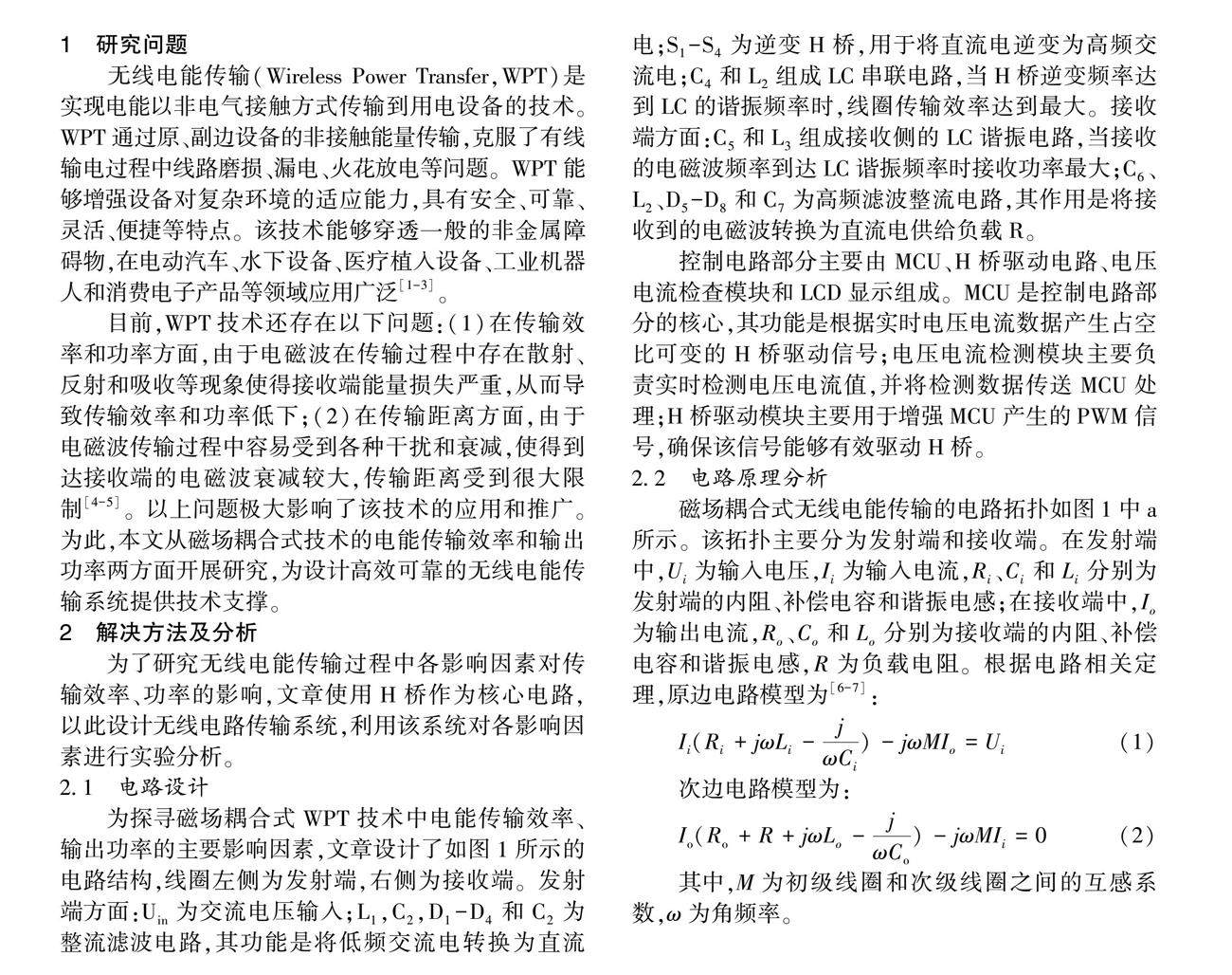 摘要:随着电力电子技术的不断发展,无线电能传输技术备受关注,其特有的电能传输方式越来越受到学术界和产业界的青睐。文章详细梳理了无线电能传输技术的理论推导,并使用H桥电路设计搭建了无线电能传输系统平台。文章基于该平台,深入研究线圈距离、圆心差、输入频率、负载和输入电压等因素对传输效率和功率的影响情况,为后期设计大功率无线电能传输技术提供技术保障。(剩余6037字)