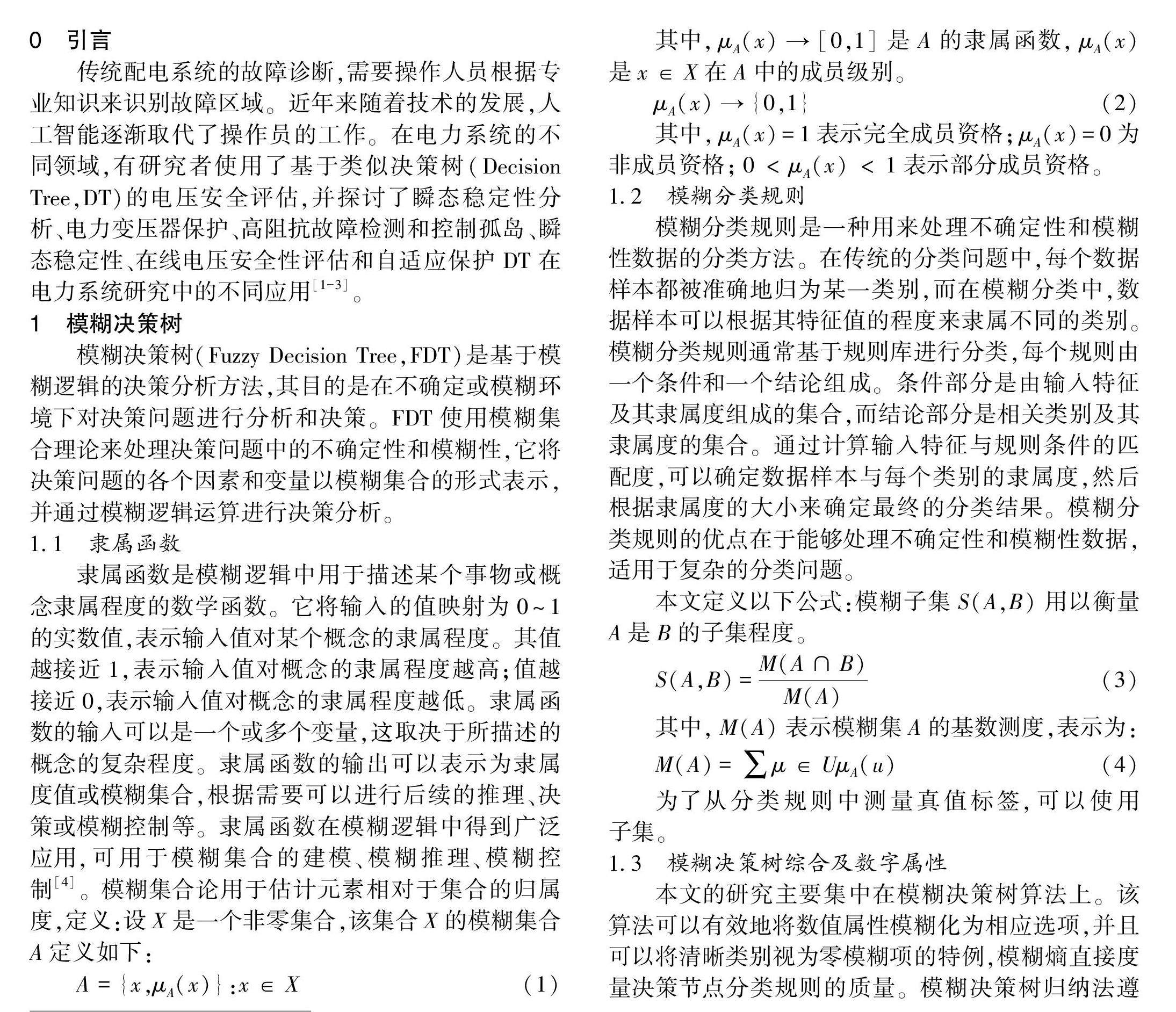 基于模糊决策树的配电线路故障诊断研究