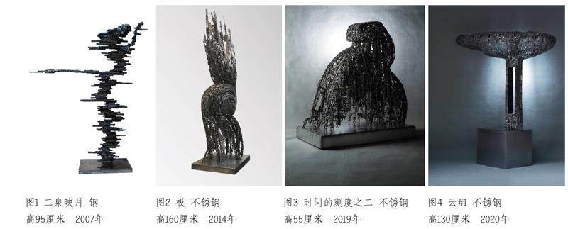 作品《二泉映月》(图1)完成于2007年。这件创作参考了中国园林假山造景的方式,用或圆或方、长短不一的钢条焊接叠加,基本保留的焊点,刚好用来表现那个波光粼粼的感觉,甚妙!水的形态,让这个内容跟形式语言和谐统一。(剩余1880字)