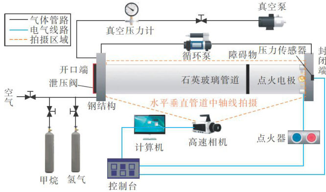Key words: hydrogen-doped methane; obstacles; flame morphology; flame propagation speed; explosion pressure
