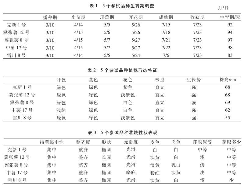 蓝田县五个马铃薯品种栽培表现对比试验