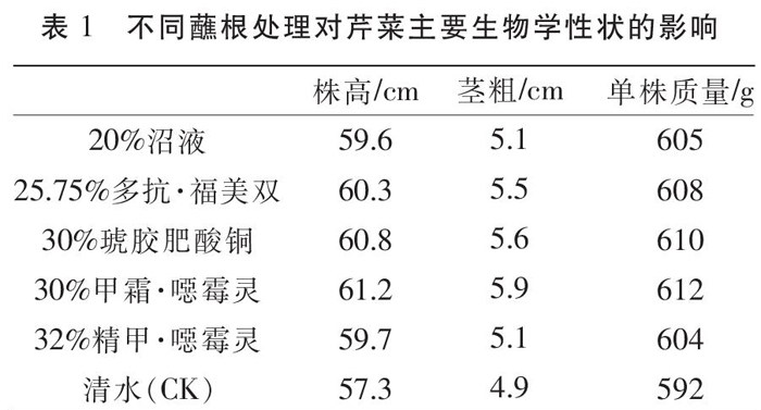 芹菜定植前药剂蘸根防治根腐病效果试验