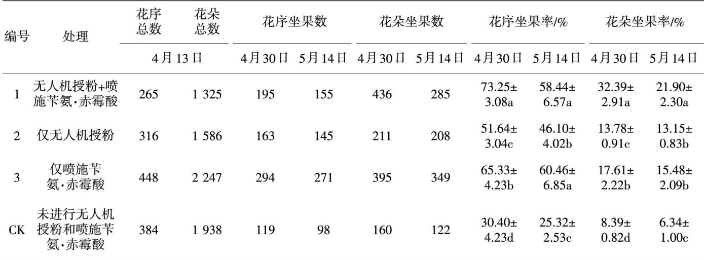 西南产区花期无人机授粉及植物生长调节剂对苹果坐果率的影响