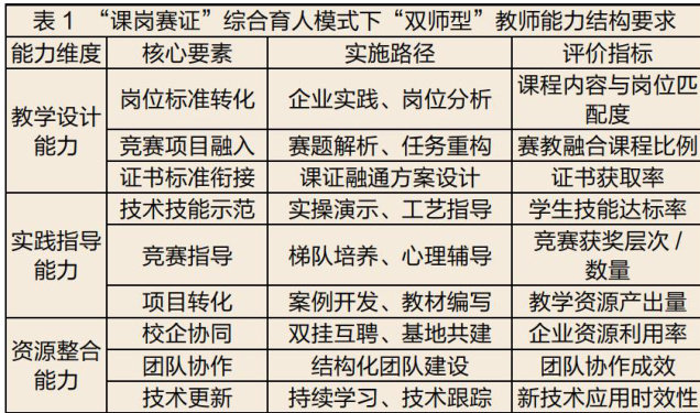 “课岗赛证”综合育人背景下高职院校“双师型”教师队伍建设研究