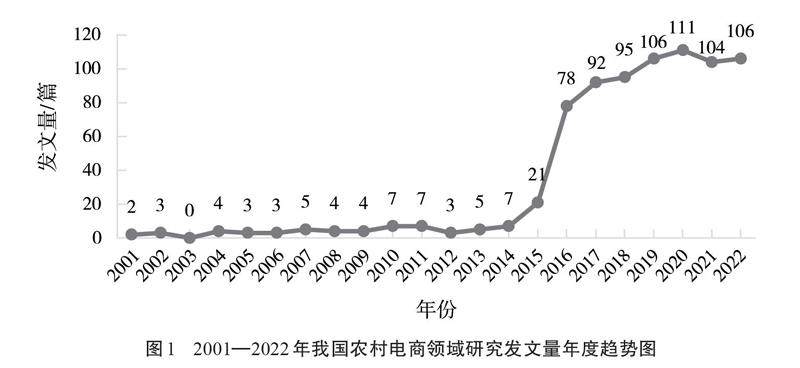 摘 要:选取2001—2022年中国知网数据库收录的北大核心期刊和CSSCI期刊刊载的与我国农村电商相关的文献作为研究样本,运用CiteSpace软件进行可视化分析,系统剖析我国农村电商领域的研究现状、热点和发展趋势。结果表明:2001—2022年,我国关于农村电商的研究总体上呈增长趋势,可根据发文量将农村电商的研究分成3个阶段,即萌芽期(2001—2014年)、爆发期(2015—2018年)和深化发展期(2019—2022年);2001—2022年,我国农村电商研究热点方向包括农村电商的市场作用、推动农村电商发展的具体措施两个方面。(剩余4590字)
