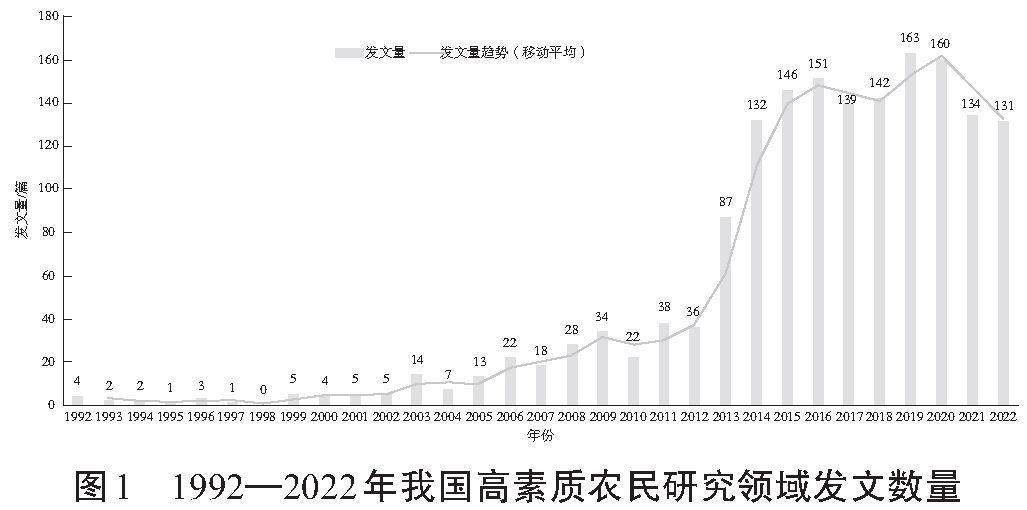 摘 要:利用CiteSpace软件对1992—2022年中国知网收录的刊发于CSSCI和北大核心期刊的1 653篇有关高素质农民的文献进行可视化分析,以探索当前我国高素质农民的研究热点和演进态势。研究表明:1992—2022年,我国关于高素质农民的研究文献数量总体呈上升趋势;已存在影响力较高的研究者及研究机构,但尚未形成稳定的合作群体;乡村振兴、职业教育、新型职业农民培育为我国高素质农民研究的热点主题。(剩余8245字)