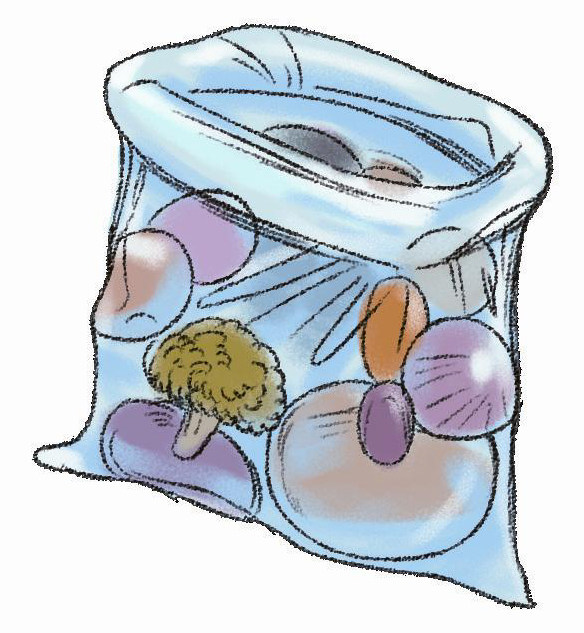 我是一只塑料袋。在工厂里,我开始了自己的生命历程。石油等化石原料提炼后的副产品经过聚合作用后,形成高分子聚合物,被制成塑料吸管、一次性餐具和塑料袋——也就是我。