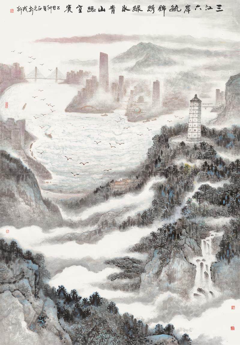 中国画《三江六岸毓锦绣 绿水青山照宜宾》