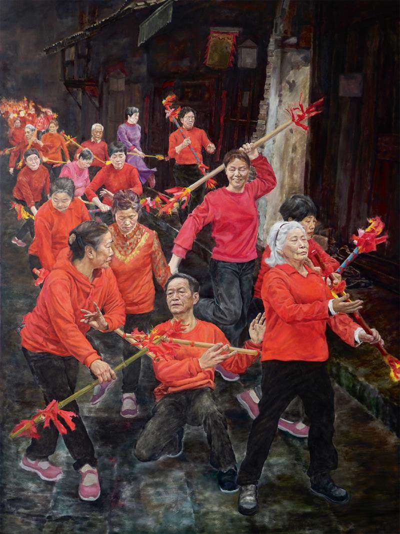 杨焕国《驻红却白》油画 200cm×150cm 2021年