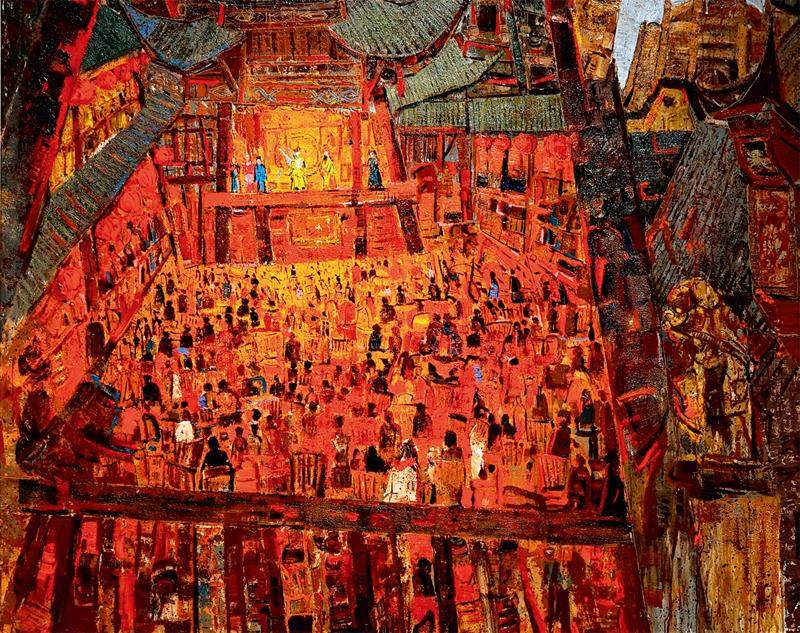 方圆《戏韵流光》油画 180cm×180cm 2024年