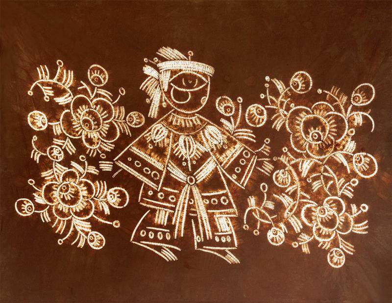 传统扎染作品《山花》,以棉布为载体,将宜宾少数民族地区的生活诗意与生态之美凝于织物之上。巧妙借鉴装饰画家梁百庚的装饰纹样风格,以简洁利落的线条塑造形态,让画面兼具秩序感与灵动感;制作中采用串缝扎染技法,使图案边缘呈现出自然晕染的独特肌理;色彩上以烟色单色染就,整体风格既保留传统扎染的朴实韵味,又传递出积极向上的生活气息。(剩余96字)