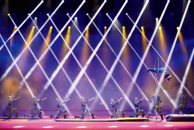 我们是出鞘的利剑,我们是洞穿铁壁的一道寒光;我们砺兵铸魂,决战疆场,肩负保卫祖国的使命担当——杂技《沙场练兵》以军事训练为灵感,在传统杂技“钻圈”技术的基础上,高扬与时俱进、推陈出新的旗帜,融合当代军旅艺术的创演理念,彰显着强军报国的力量!