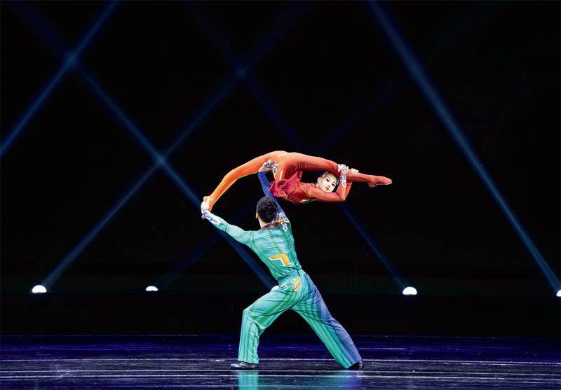 该作品以中国传统榫卯工艺为灵感,通过男女双人技巧造型,展现人与人之间的配合与和合之美。节目寓意中国文化“精巧、契合、坚韧”的精神特质。