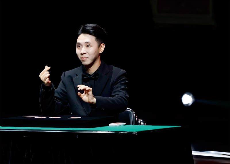 该作品以“幻境迷阵”为主题,将舞美设计与魔术道具巧妙融合。演员以纸牌与硬币为载体呈现魔术效果,并对经典的“硬币矩阵”效果进行创新升级。节目中打破常规传统双手变魔术的方式,以单手完成硬币转移,更巧妙融合硬币变色、纸牌变色等多种魔术效果。纸牌与硬币的运用相得益彰,流程层层递进,将观众带入一个兼具神秘感与艺术魅力的魔术世界。(剩余82字)
