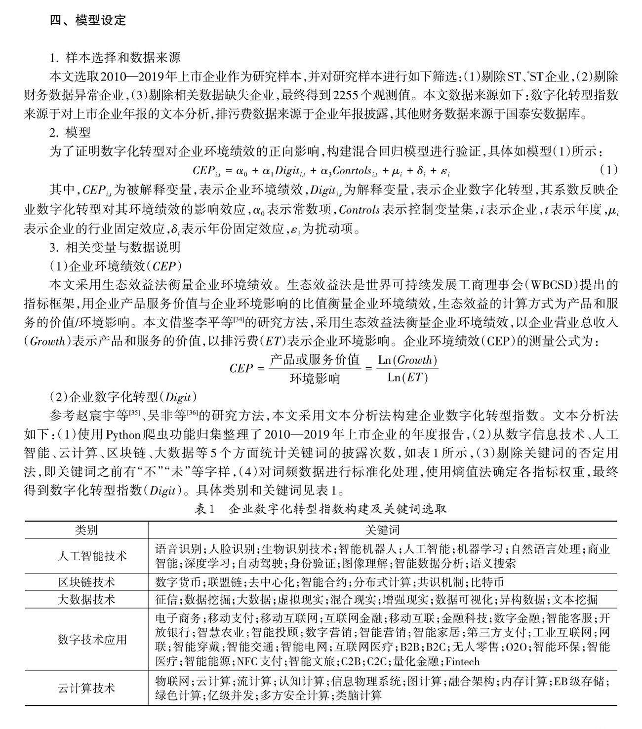 [摘要]在互联网时代,数字技术飞速发展,企业数字化转型对经济高质量发展具有重要作用。以2010—2019年上市企业为研究对象,探究数字化转型对上市企业环境绩效的影响。结果表明,相对于没有进行数字化转型的企业,数字化转型企业的环境绩效更好,在进行了一系列稳健性检验后结论仍然成立。影响机制分析表明,数字化转型通过提高绿色技术创新水平和信息透明度两个途径提高企业环境绩效。(剩余13445字)