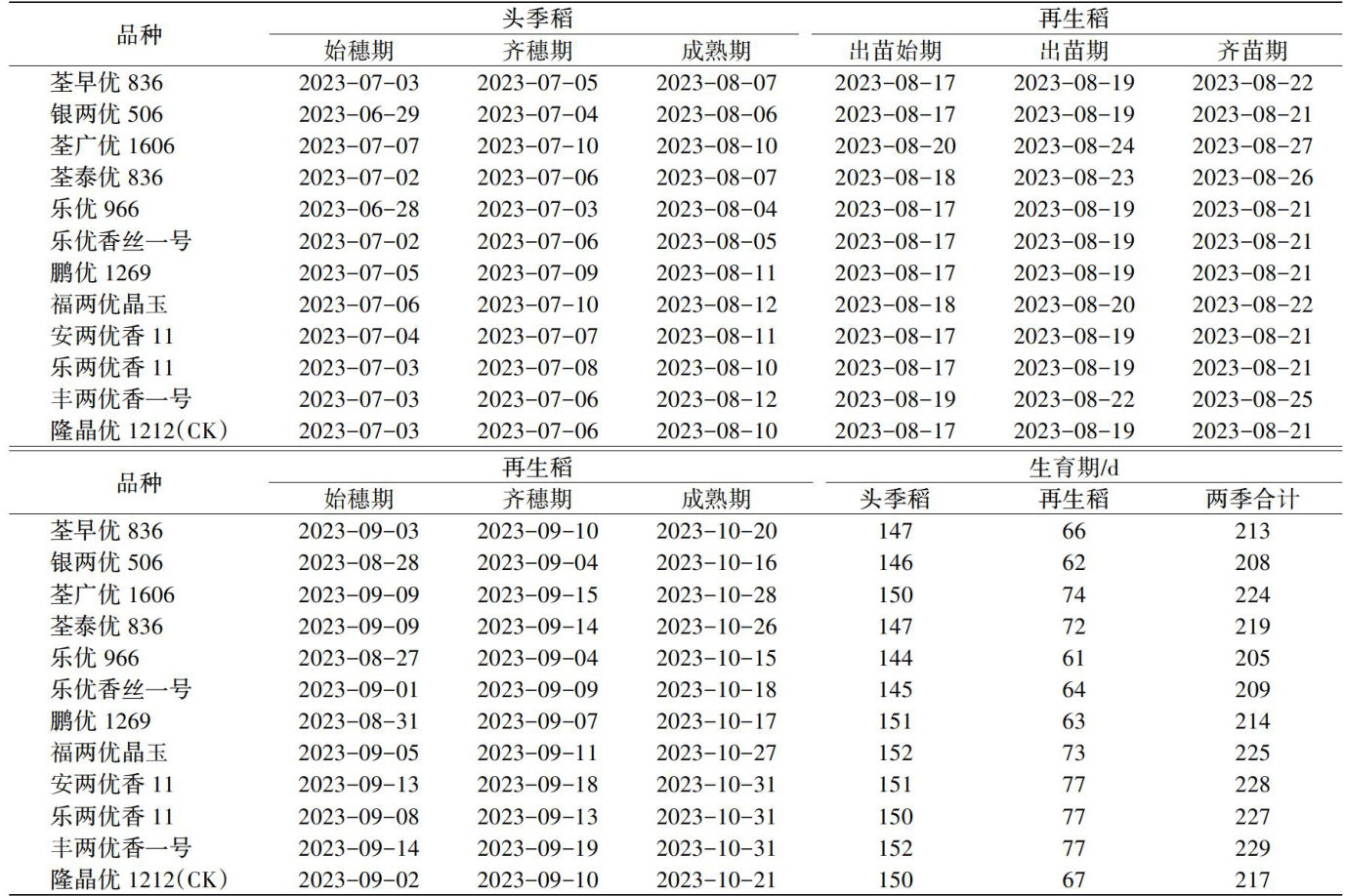 沿淮地区早熟中稻“一种两收”品种比较试验