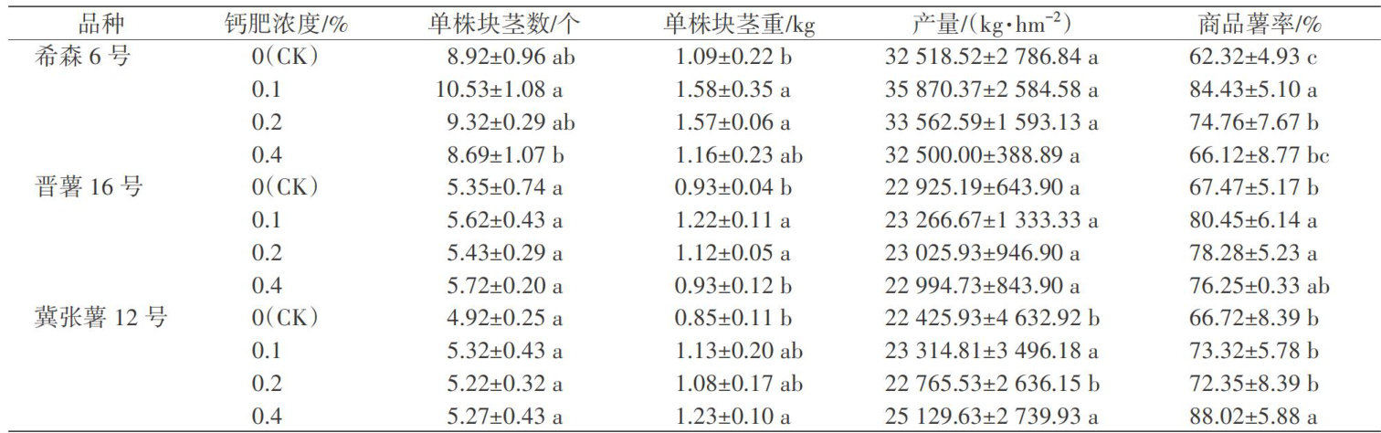 叶面喷施钙肥对不同品种马铃薯产量和品质的影响