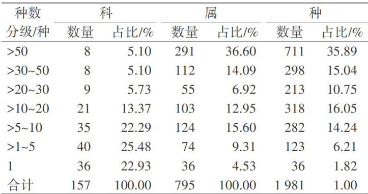 植物区系是某一特定地区在自然历史条件作用下发展演化形成的所有植物种类总和I。对特定区域植物区系的研究,不仅能揭示植物与环境之间的生态联系及生物多样性区域间的演化规律,还能为植物资源保护和开发利用提供基础数据[2]。植物科与属的分布区类型构成可以揭示不同地理区域间区系亲缘性的关系。鉴于属的分类特征具有较高的稳定性,其分布区类型构成能够更加精确地反映物种分异及区系演化的历程。(剩余10568字)