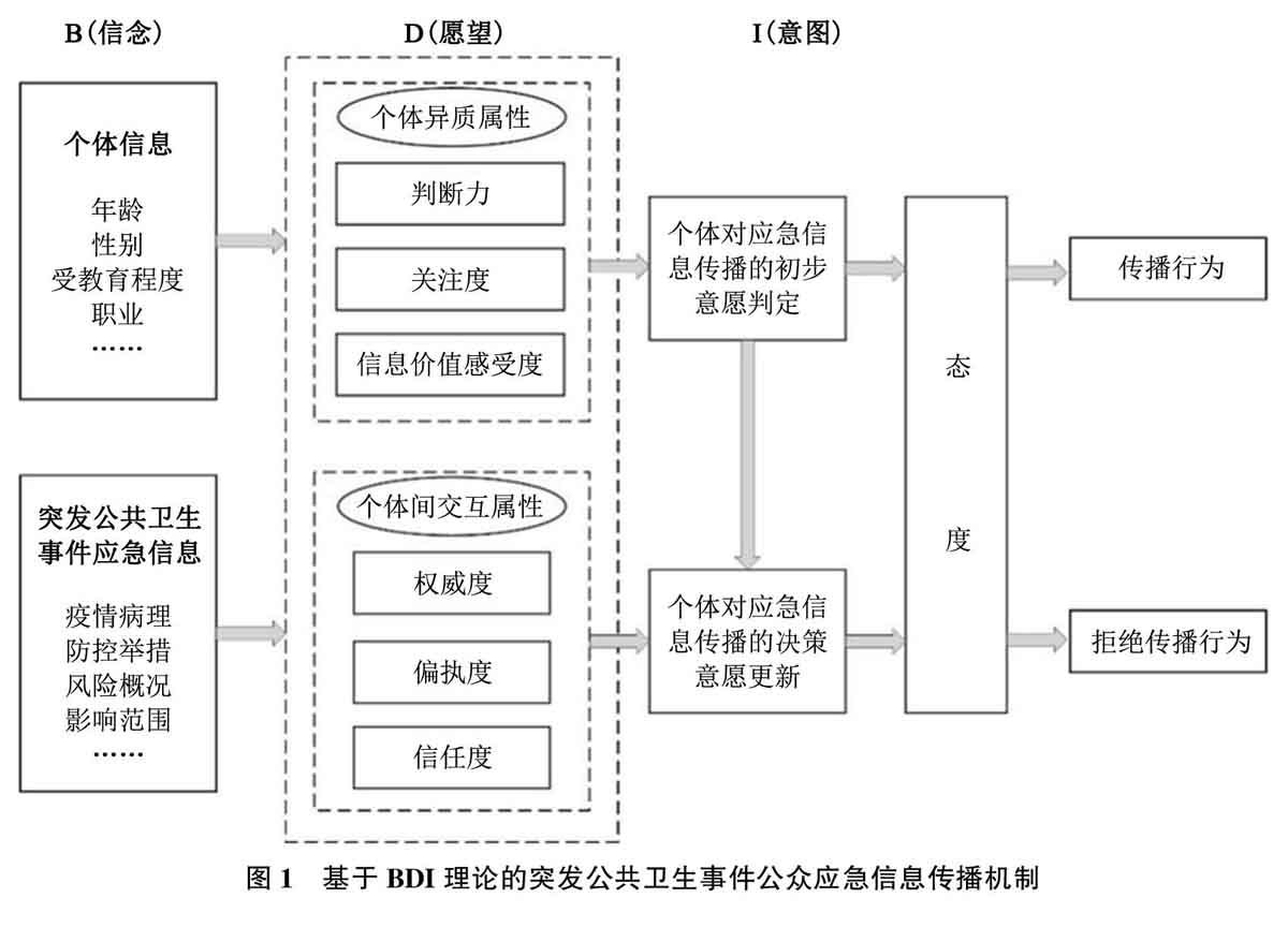 关键词: BDI 模型; 突发公共卫生事件; 应急信息; 传播机制