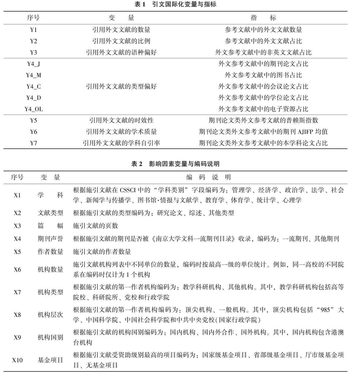关键词: 论文; 引文; 社会科学; 国际化; 参考文献; 外文文献; 引用行为; 影响因素