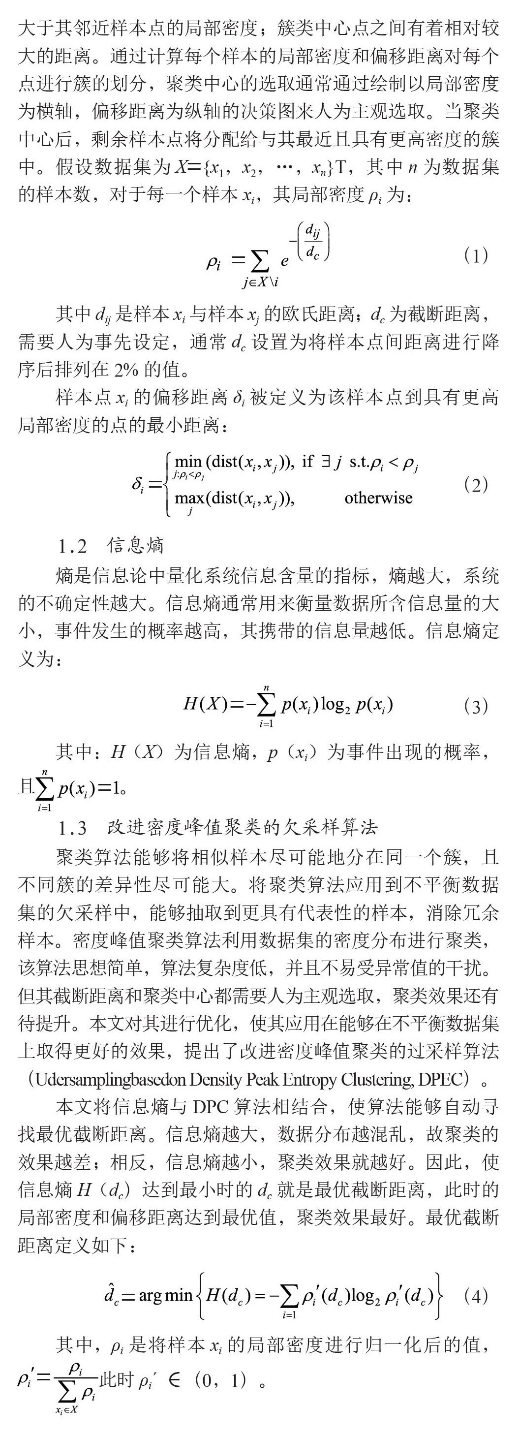 一种改进密度峰值聚类的欠采样算法