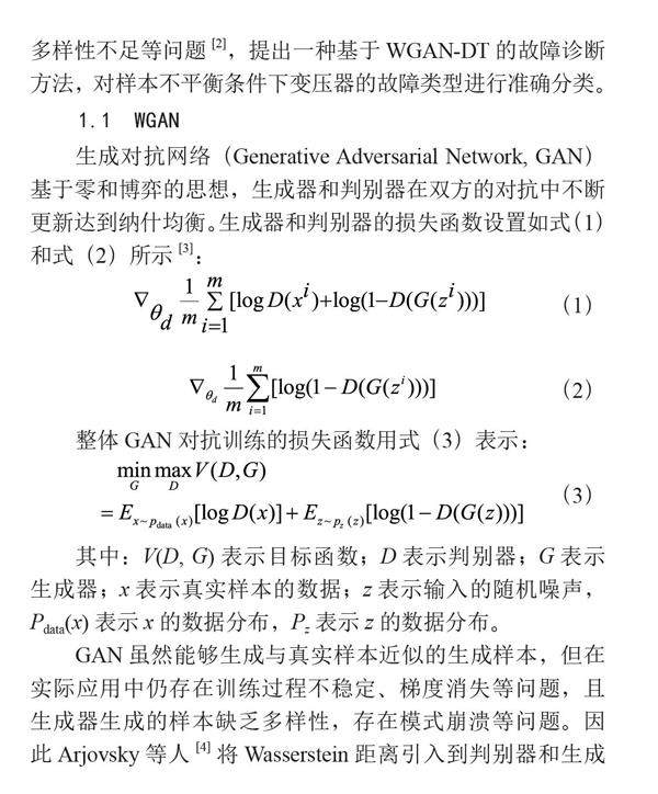 不平衡条件下基于WGAN-DT的变压器故障诊断研究