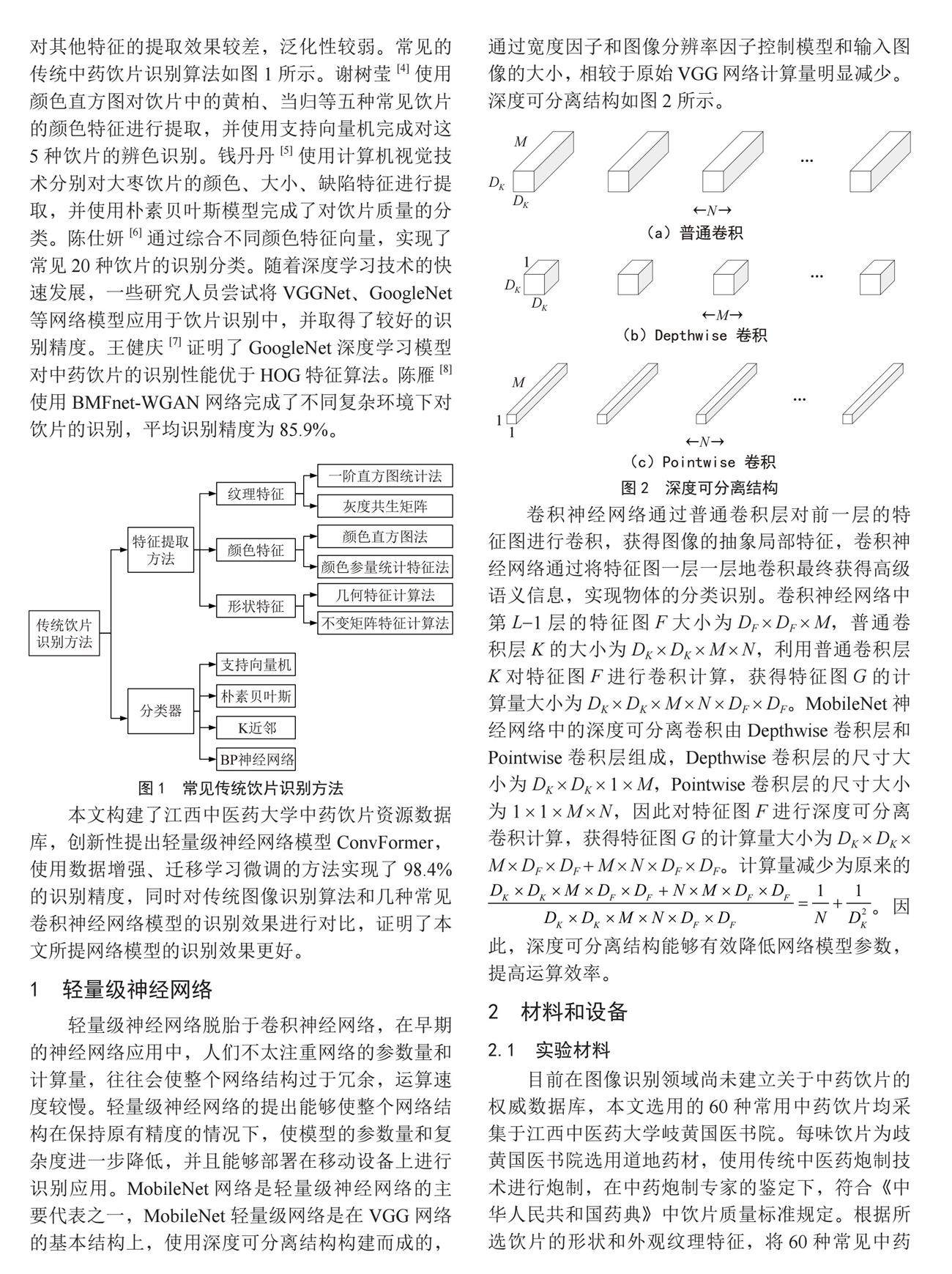 摘 要:为提高人们的中医药文化素养,克服人们对中药饮片认知依赖专家经验的问题,探索计算机视觉技术识别中药饮片的可行性,文章建立了包含60种常用中药饮片的数据库,构建一种用于中药饮片图像识别的轻量化卷积神经网络模型(ConvFormer),并与常用的图像识别算法进行了实验对比。实验结果表明,该文提出的ConvFormer模型优于常用的几种图像识别算法,模型经过微调后识别准确率可达98.4%,可为中药饮片图像识别提供可靠的技术支撑。(剩余9934字)