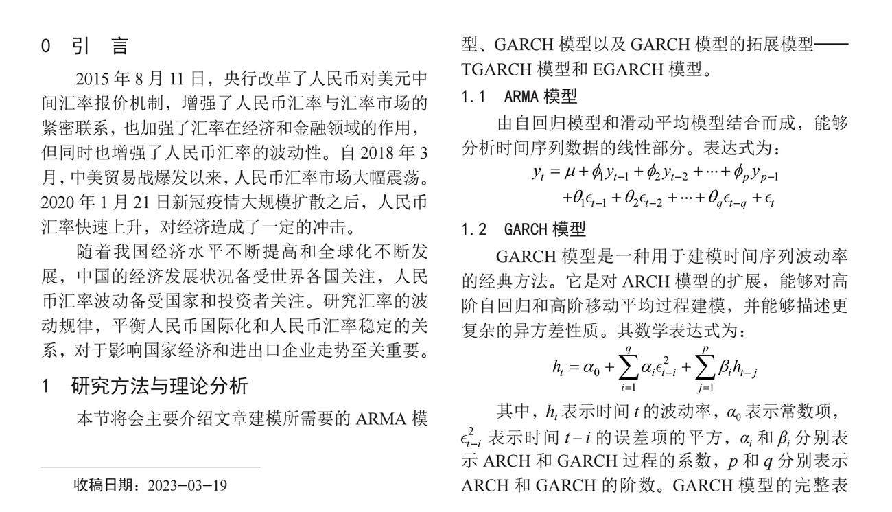 摘 要:文章使用2015年8月11日至2022年11月30日人民币兑美元汇率的日交易中间价数据进行研究。首先对该数据进行对数差分处理,得到平稳的人民币汇率对数收益率序列。其次通过描述性统计分析发现该序列“尖峰厚尾”,而平稳性检验和ARMA模型建立证实了该序列的非随机性质,异方差性检验确认了波动聚集性。(剩余6865字)