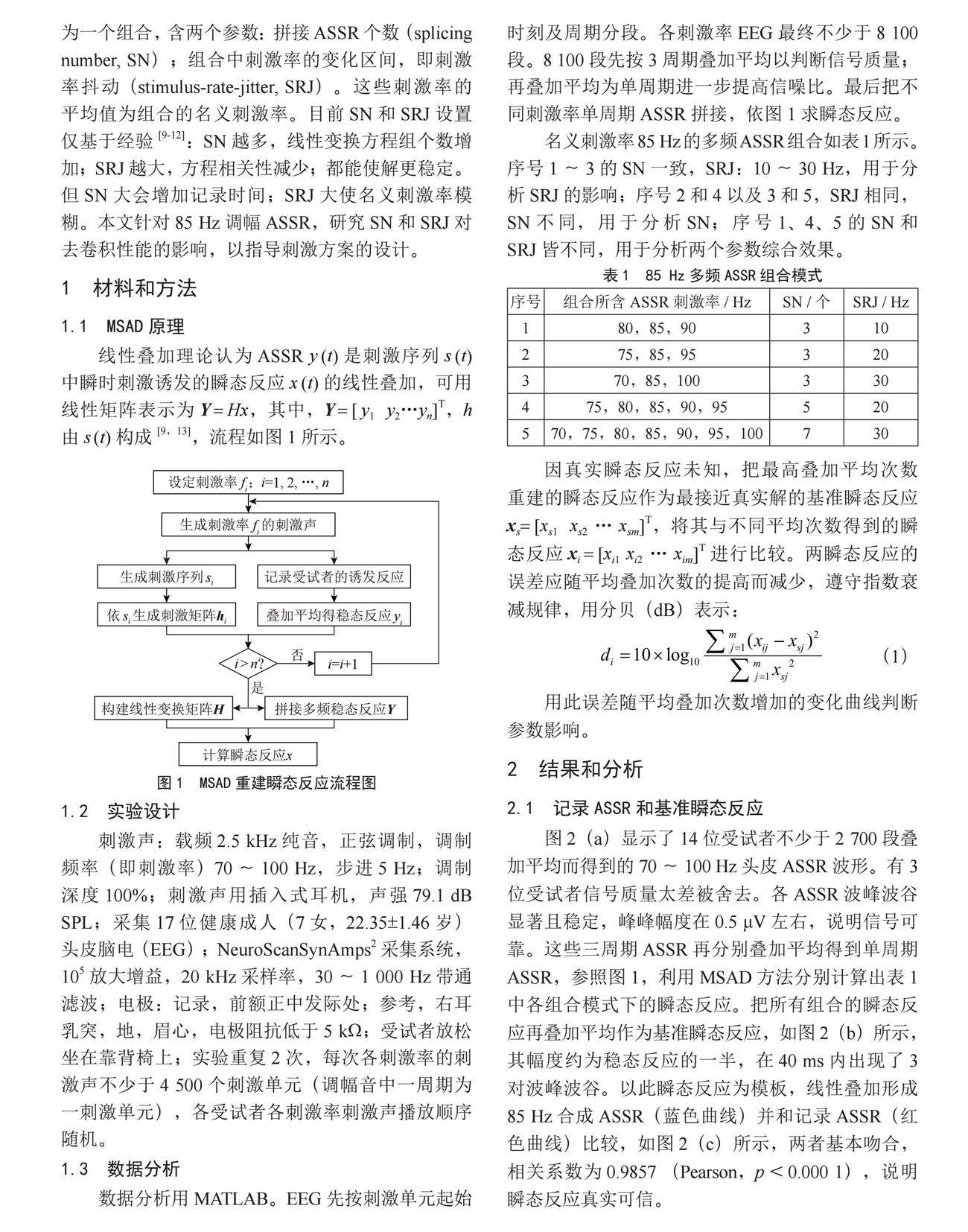 多刺激率稳态平均去卷积方法关键参数对瞬态反应重建的影响