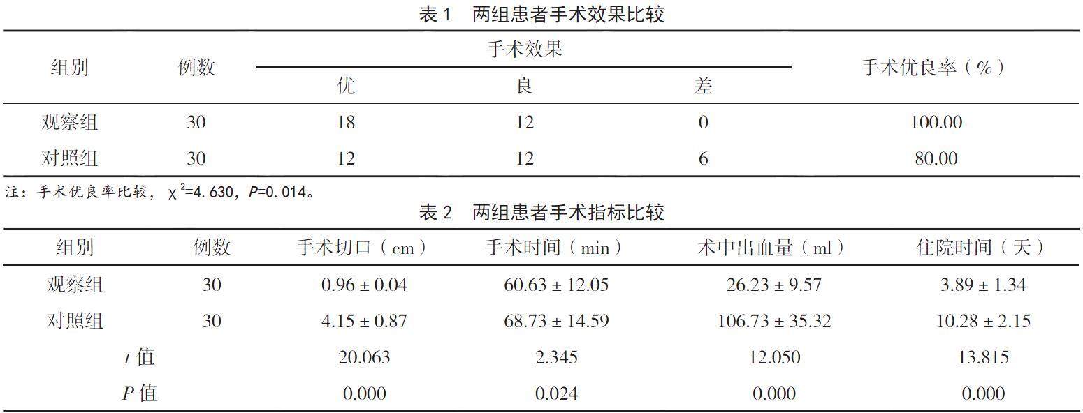 【摘要】 目的 分析腰椎间盘突出症患者接受经皮椎间孔镜椎间盘切除术治疗的效果。方法 选取2021年1月- 2022年12月医院收治的60例腰椎间盘突出症患者作为研究对象,按照组间性别、年龄、病程、突出节段等基线资料均衡可比的原则分为两组,每组30例。对照组接受椎板间开窗椎间盘切除术治疗,观察组接受经皮椎间孔镜椎间盘切除术治疗,对比两组患者临床治疗效果。(剩余6041字)