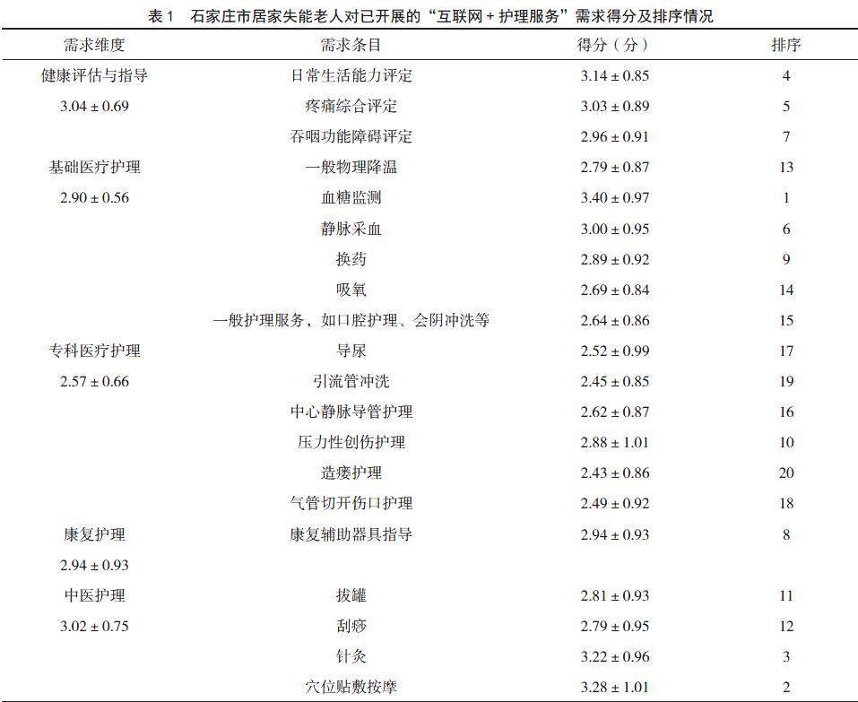 石家庄市居家失能老人“互联网+护理服务”需求现状及影响因素分析