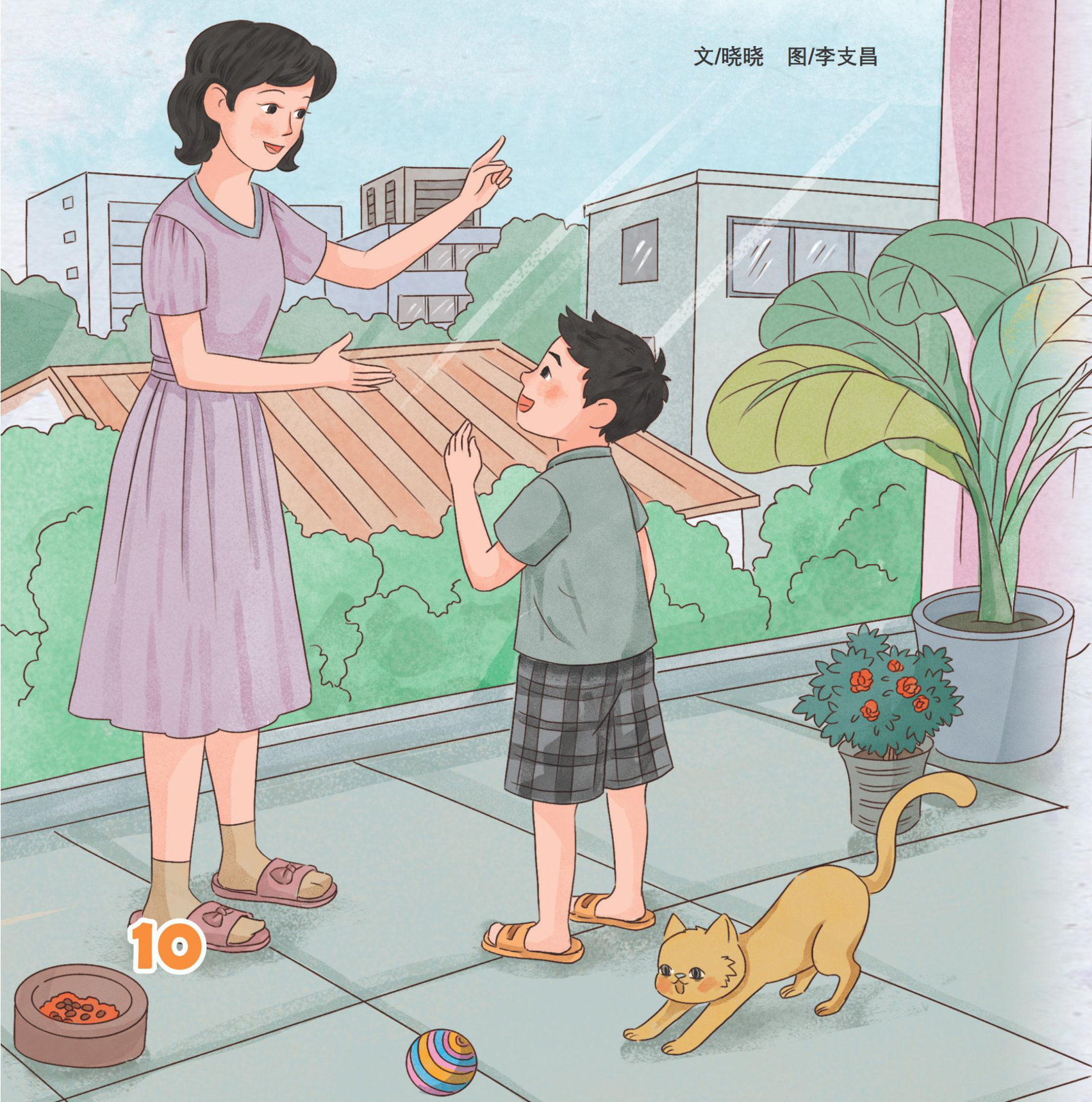 一个周末的午后,雪豆写完作业,站在窗边望着天空发呆突然,他被天上变幻的云朵吸引,兴奋地喊来妈妈。