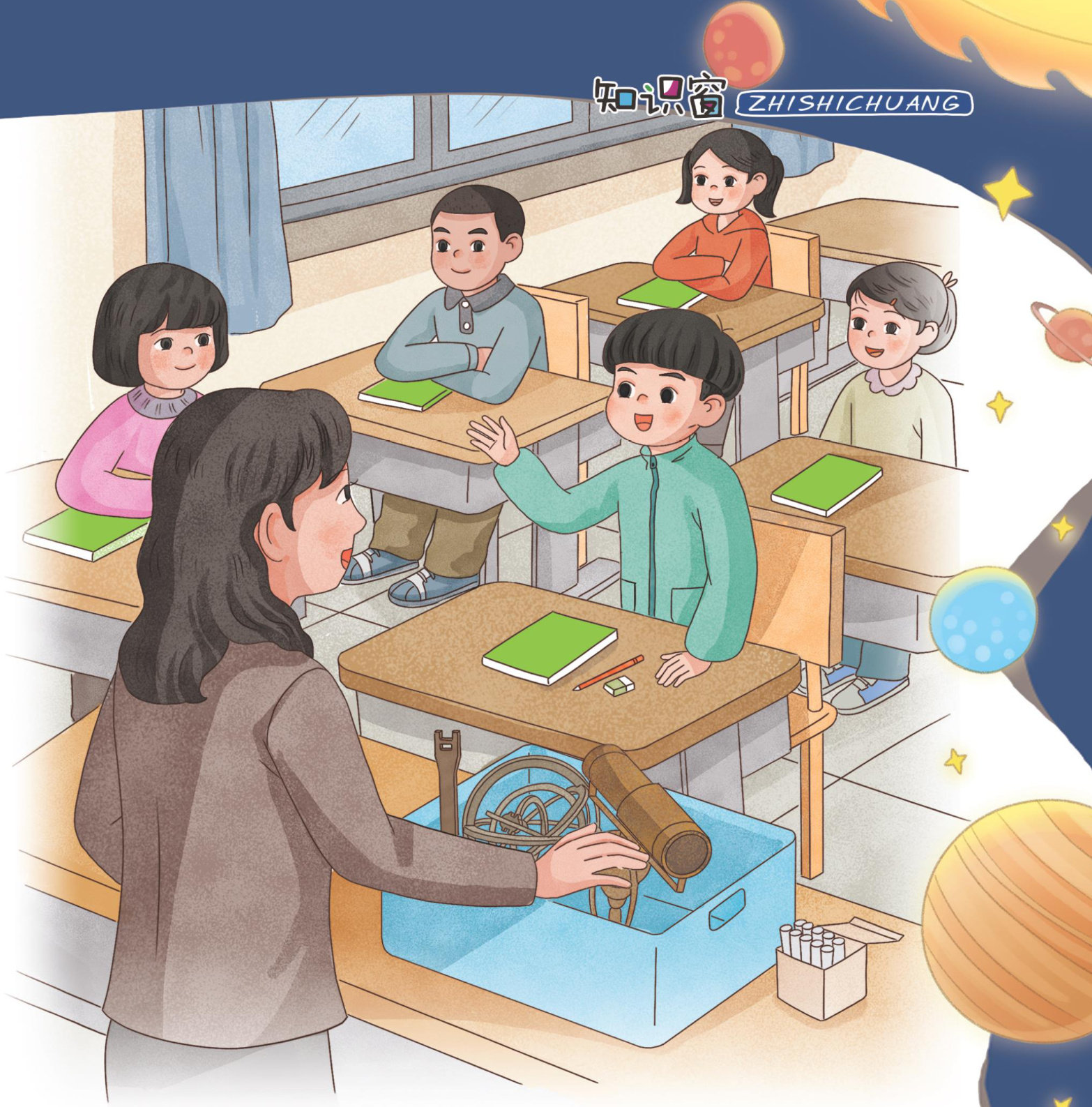 相信大家对阅兵式中的军事航天部队方队印象很深刻吧,不过咱们的‘航天梦‘可不只是今天才有的,这堂课我就带你们‘时空穿越’,看看古人是怎么‘追星‘的。”老师笑着提问,“谁知道古人是如何观星的?”
