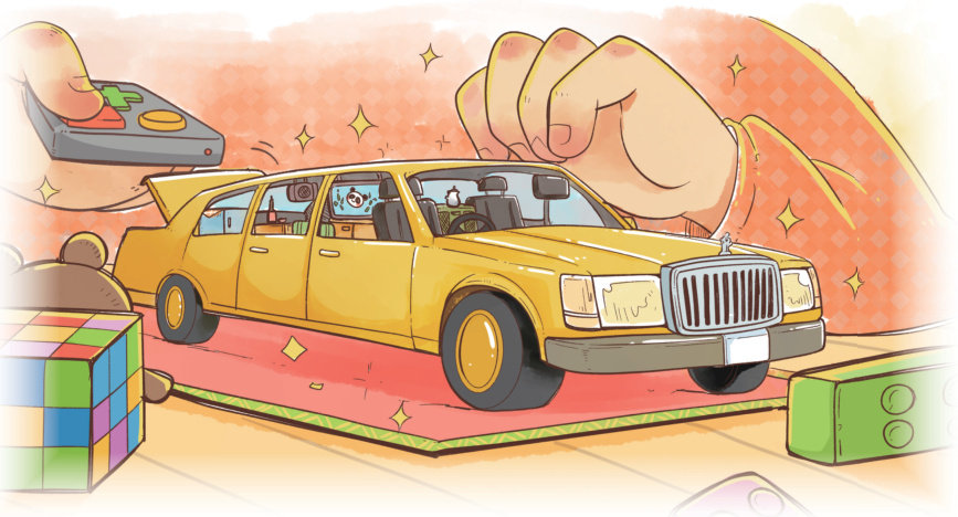 它的车身是金色的,在阳光照耀下闪闪发光,简直太酷了。它是加长版的豪华小汽车。车上的配置很多,有冰箱、音响,还有一个大大的显示屏。车的后备厢就像一个哆啦A梦的百宝箱,可以装下很多东西。只要打开车门,车轮就会发光,小汽车仿佛在对我说:“小主人,我已经准备好了,快出发吧。(剩余286字)