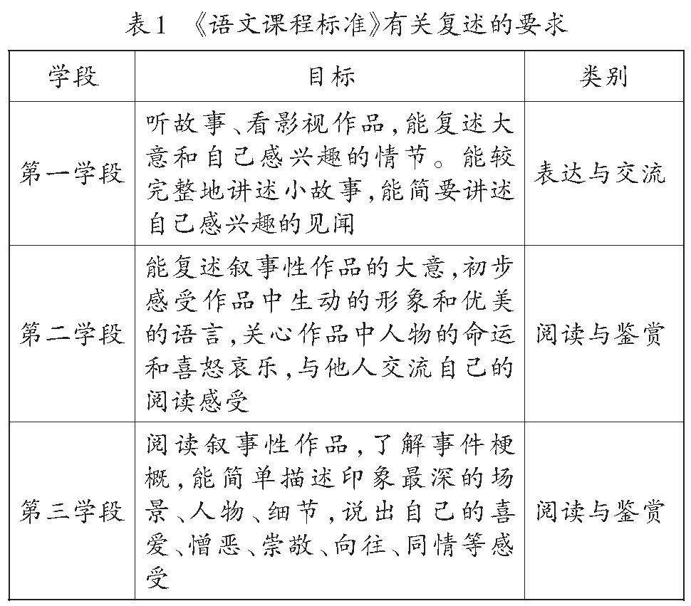[摘 要]复述是锻炼学生语言表达能力和逻辑思维能力的有效路径,对语文教学具有重要作用。然而,当前复述教学存在观念淡薄、方式简单、时间紧迫等问题。教师要重视复述的教学价值,基于新课程理念,梳理复述目标体系,利用连环画、表格、关键句、人物形象等要素,为学生搭建复述支架,提高学生的语文综合能力。