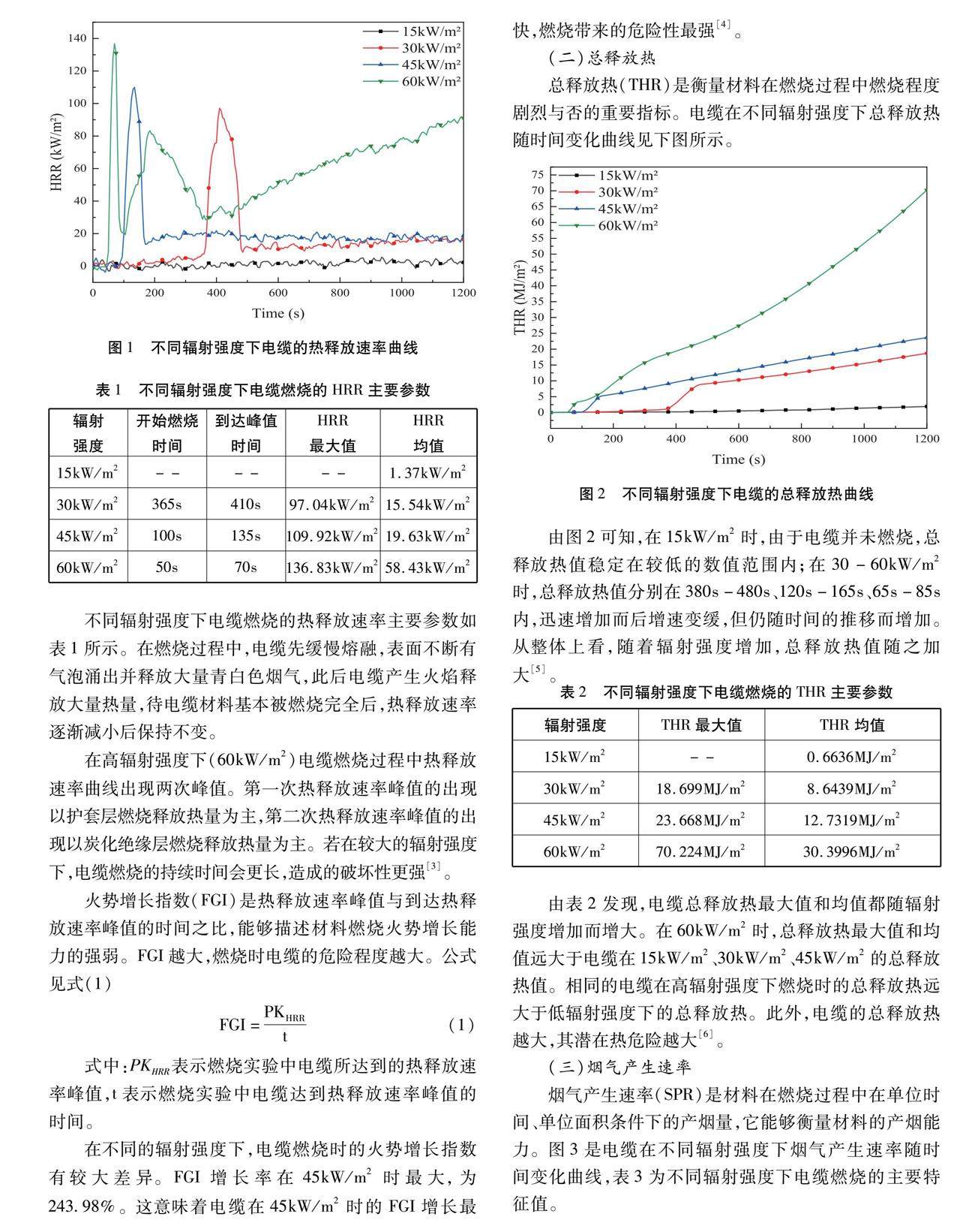 不同辐射强度下电缆燃烧特性研究