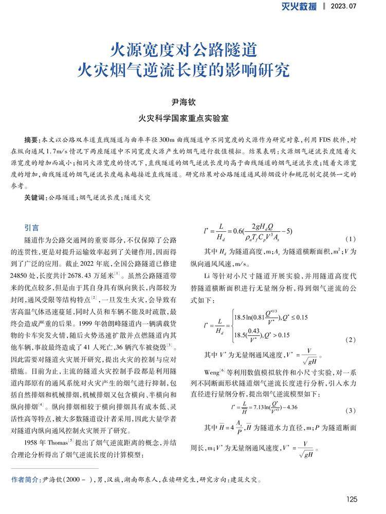 火源宽度对公路隧道火灾烟气逆流长度的影响研究