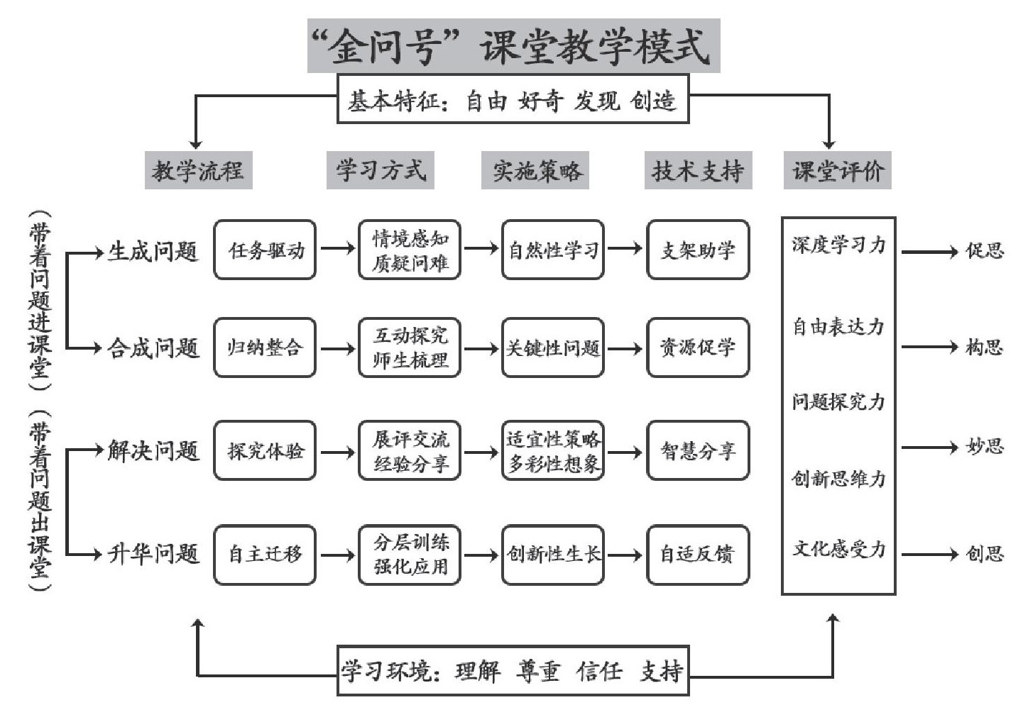 【摘 要】核心素养以关注人的全面发展为核心,是新时期学校教育的育人目标。为实现这一目标,我们教育的思路也正发生着本质性改变,关注的焦点也集中在学生的思维能力培养上。我们提出“金问号”课堂,着力探究轻松的教学流程、愉悦的学习方式、高效的实施策略、智慧的技术支持与绿色的生长性评价,以期激发学生的内驱力,推动学生思维的进阶,从而培养学生的终身学习力。(剩余4020字)