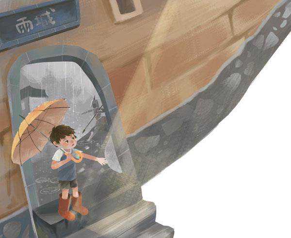 威威住在雨城。雨城名副其实,有时候飘毛毛雨,有时候下中雨,还有的时候下瓢泼大雨,总之一年四季就没停过下雨。