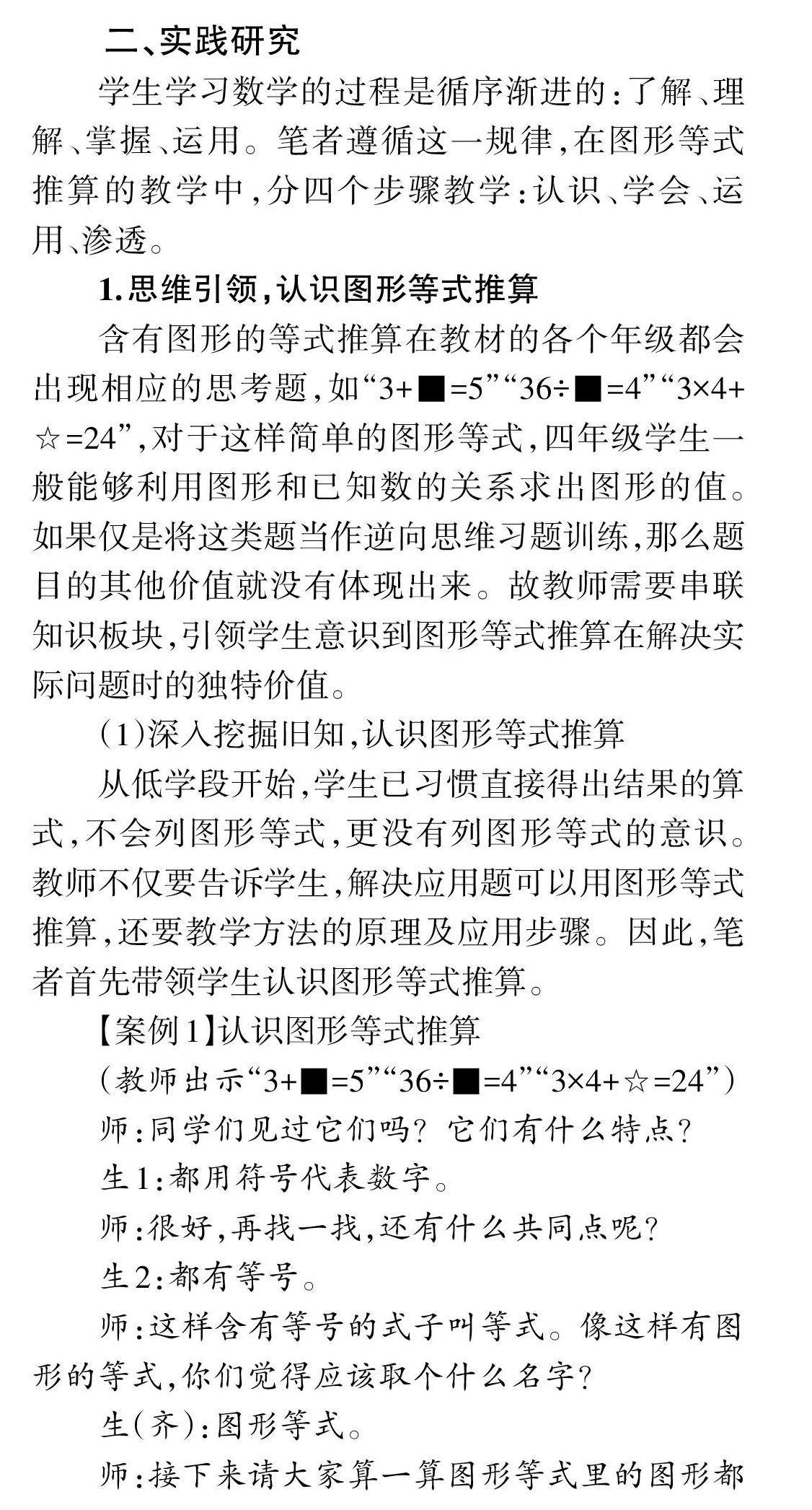 [关键词]图形等式推算;推理意识;符号意识;模型意识