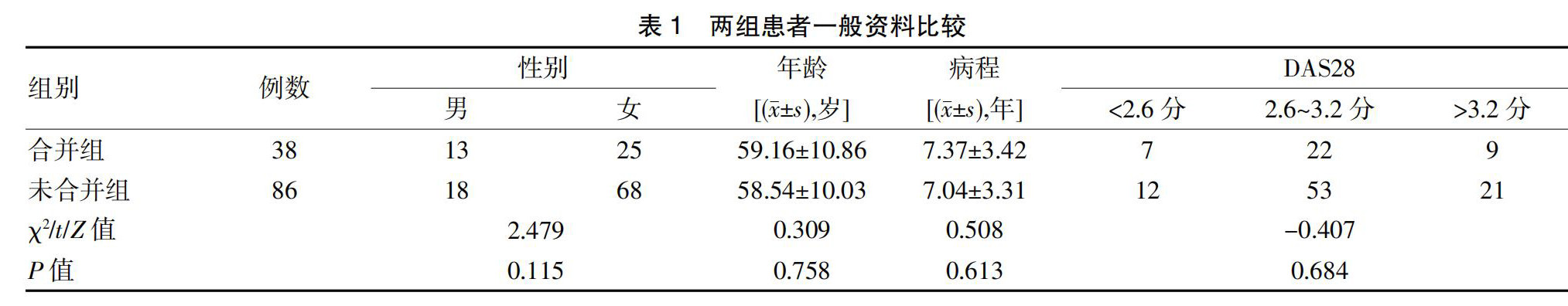 [摘要] 目的 探讨类风湿因子(RF)、抗环瓜氨酸肽(抗CCP)抗体对类风湿关节炎(RA)患者并发心血管疾病的影响。方法 于2019年11月—2020年10月选取124例在该院治疗的RA患者为研究对象。所有患者均进行RF、抗CCP抗体检测,并行彩色多普勒超声心动图、心电图检查。根据患者是否并发心血管疾病分为合并组(n=38)和未合并组(n=86)。(剩余8657字)