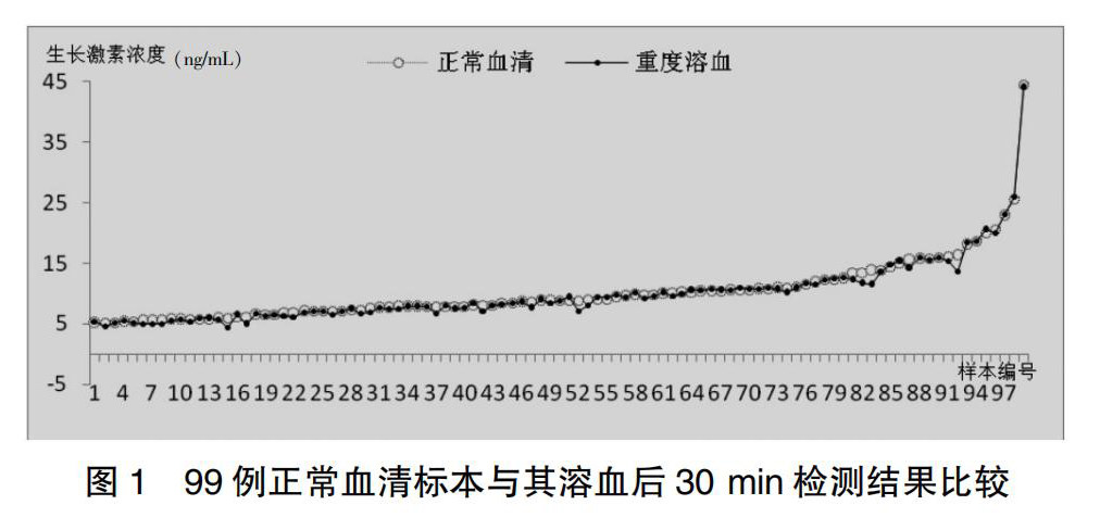[摘要] 目的 探讨标本溶血对电化学发光法检测生长激素结果的影响。方法 收集149例生长激素检测值>5 ng/mL的正常血清样本,用离心机处理后人为造成样本重度溶血,并于溶血后30 min、8 h用电化学发光法测定其结果。结果 99例样本在重度溶血后30 min的检测值较其正常值低(0.22±0.60)ng/mL,差异有统计学意义(t=4.80,P<0.05);50例样本在重度溶血后8 h的检测值较其正常值低(0.19±0.27)ng/mL,差异有统计学意义(t=4.80,P<0.05)。(剩余6851字)