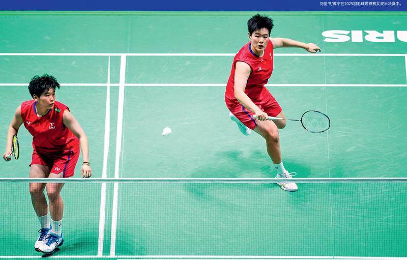 刘圣书/谭宁在2025羽毛球世锦赛女双半决赛中。