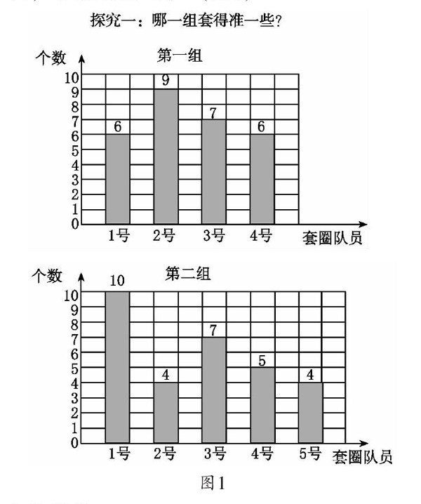 师:老师用条形统计图表示出第一组和第二组的套圈情况,你能看懂吗?(图1)