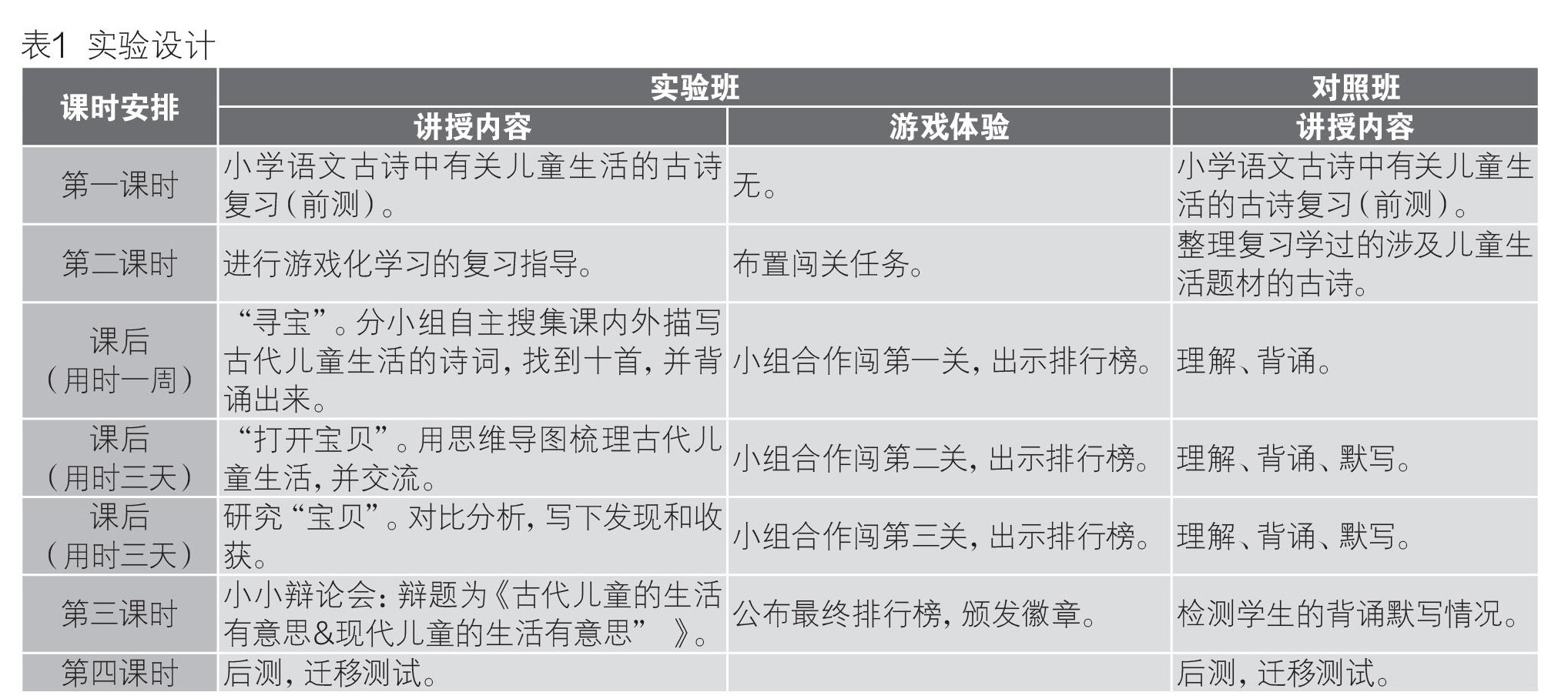 【摘 要】结合科学学习理论,设计游戏化学习方案,在古诗词复习课中实践,助力学生自主探究,提升学生主动思考以及综合分析的能力。通过对学业成绩和调查问卷量表的分析表明,游戏化学习对提升自主学习能力能够起到促进作用。