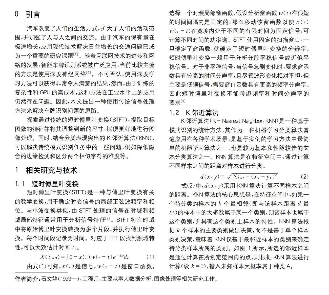 基于短时傅里叶变换与KNN算法结合的车牌识别方法