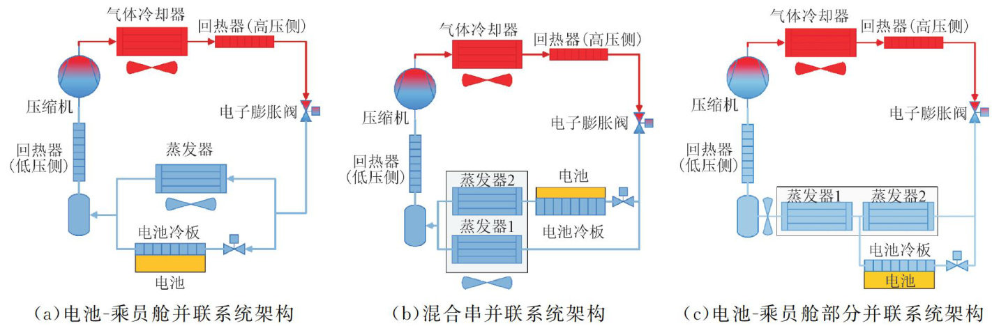 不同跨临界 CO2 直冷系统架构下动力电池冷却系统性能分析