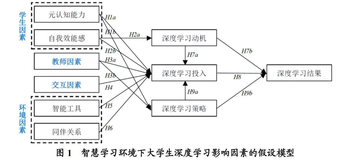 摘要:尽管各大高校已纷纷开展智慧学习环境的建设与使用,但学生并没有达到预期的深度学习效果,亟需厘清智慧学习环境下深度学习的影响因素。为此,文章首先构建了智慧学习环境下大学生深度学习影响因素的假设模型。随后,文章采用问卷调查法、结构方程模型进行了假设检验和模型验证,结果发现:深度学习在年级、专业上存在显著差异,而在性别上不存在显著差异;深度学习受学生因素、教师因素、交互因素、环境因素的影响;学生因素是影响深度学习的主要因素,而环境因素是次要因素。(剩余11399字)